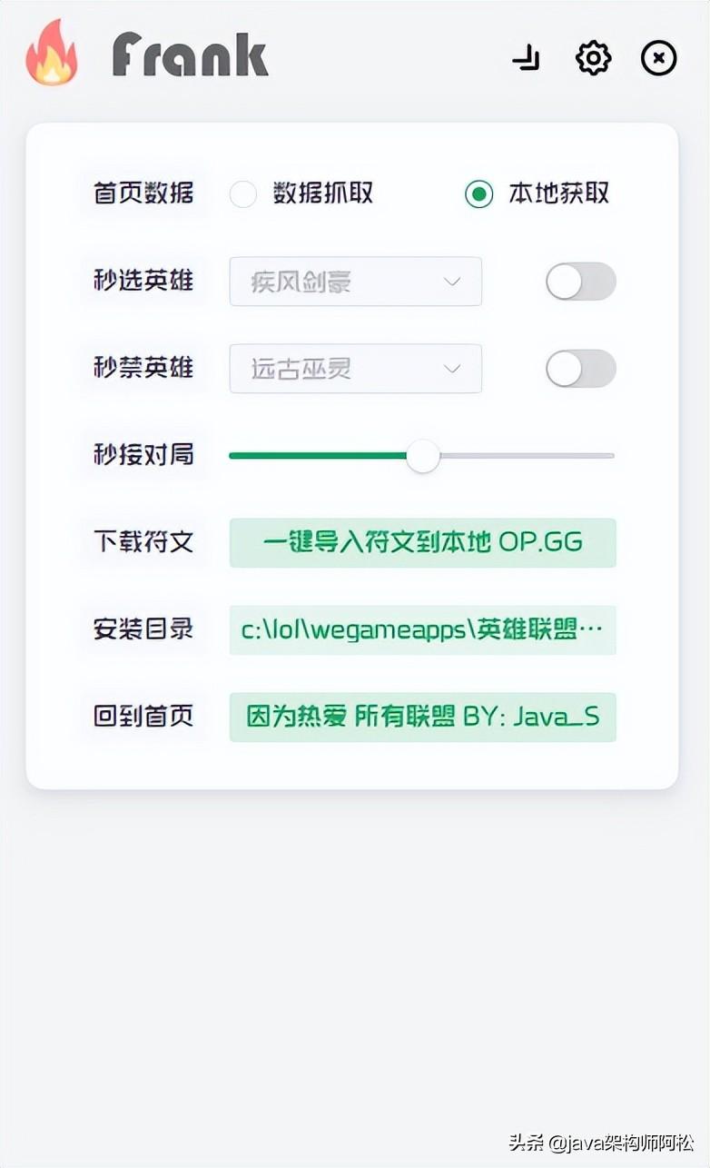 启动Frank的同时, Frank会自动检测英雄联盟客户端是否已经启动