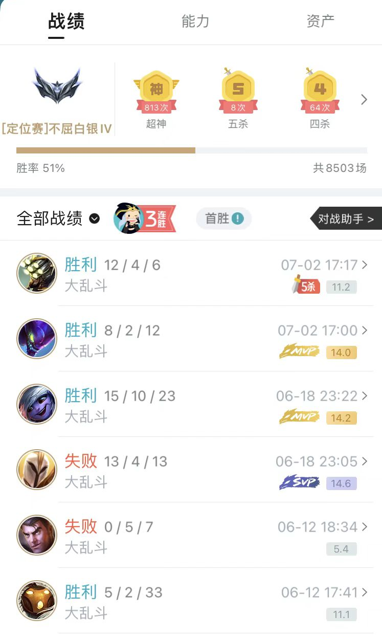 于是腾讯给掌上 WeGame 加入了非常核心的战绩查询系统 ,没事查查战绩,跟朋友炫耀一下还是挺不错的。