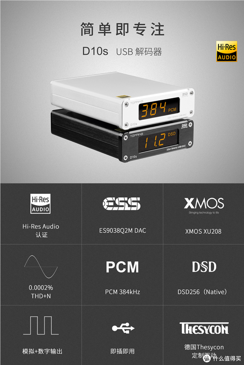 1、TOPPING 拓品D10s桌面USB解码器,