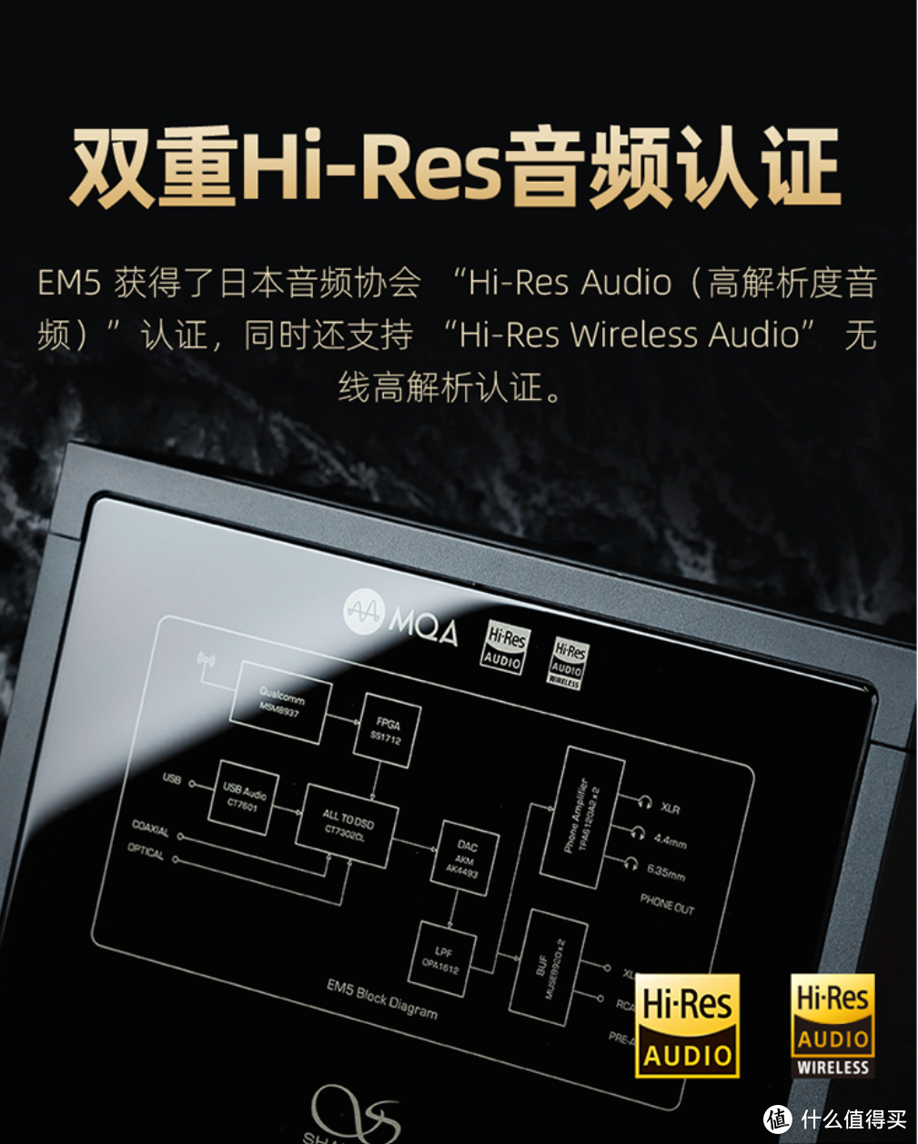 这款解码器使用ESS的ES9038Q2M DAC芯片,通过Hi-res AUDIO认证,蓝牙版支持LDAC高清音频传输。