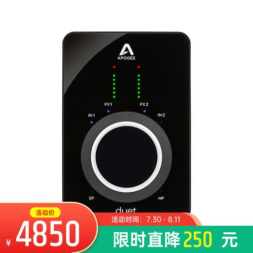 推荐理由:Apogee Duet 3专业录音声卡,具有独特的外观,带紫色LED背光,品质感十足,巴掌大小非常便携,移动性强。2进4出,带2个麦克风前置放大器和硬件DSP,音质在同价产品中是比较出色的,特别对苹果设备兼容更友好。性能强大,搭载虚拟通道同样可以实现直播K歌。